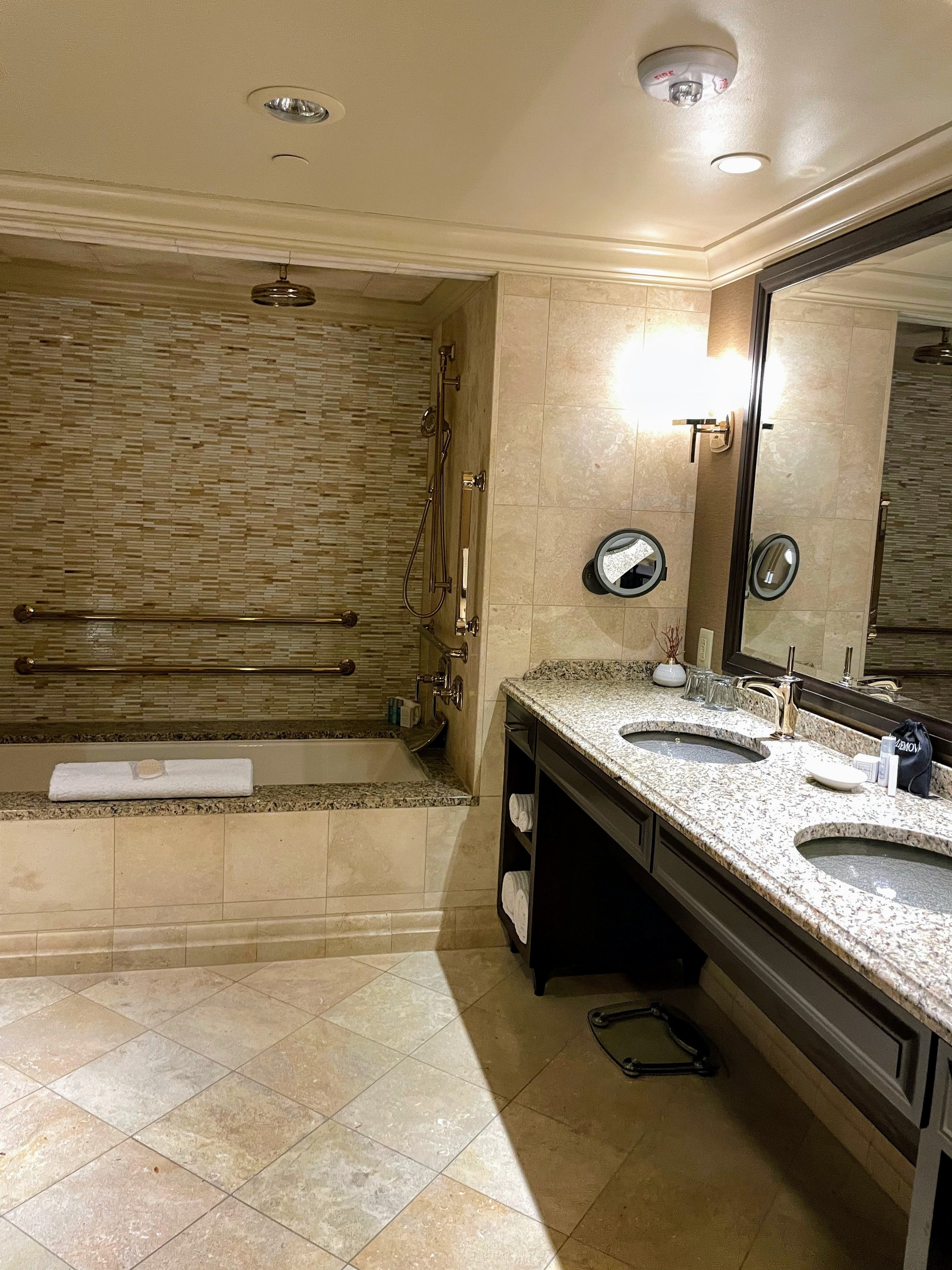 The bathroom, likewise, was huge with a giant, jetted tub that I absolutely loved. Of course, the bathrooms are outfitted with Kohler products, so you know you won’t have any issues with flushing or showering.