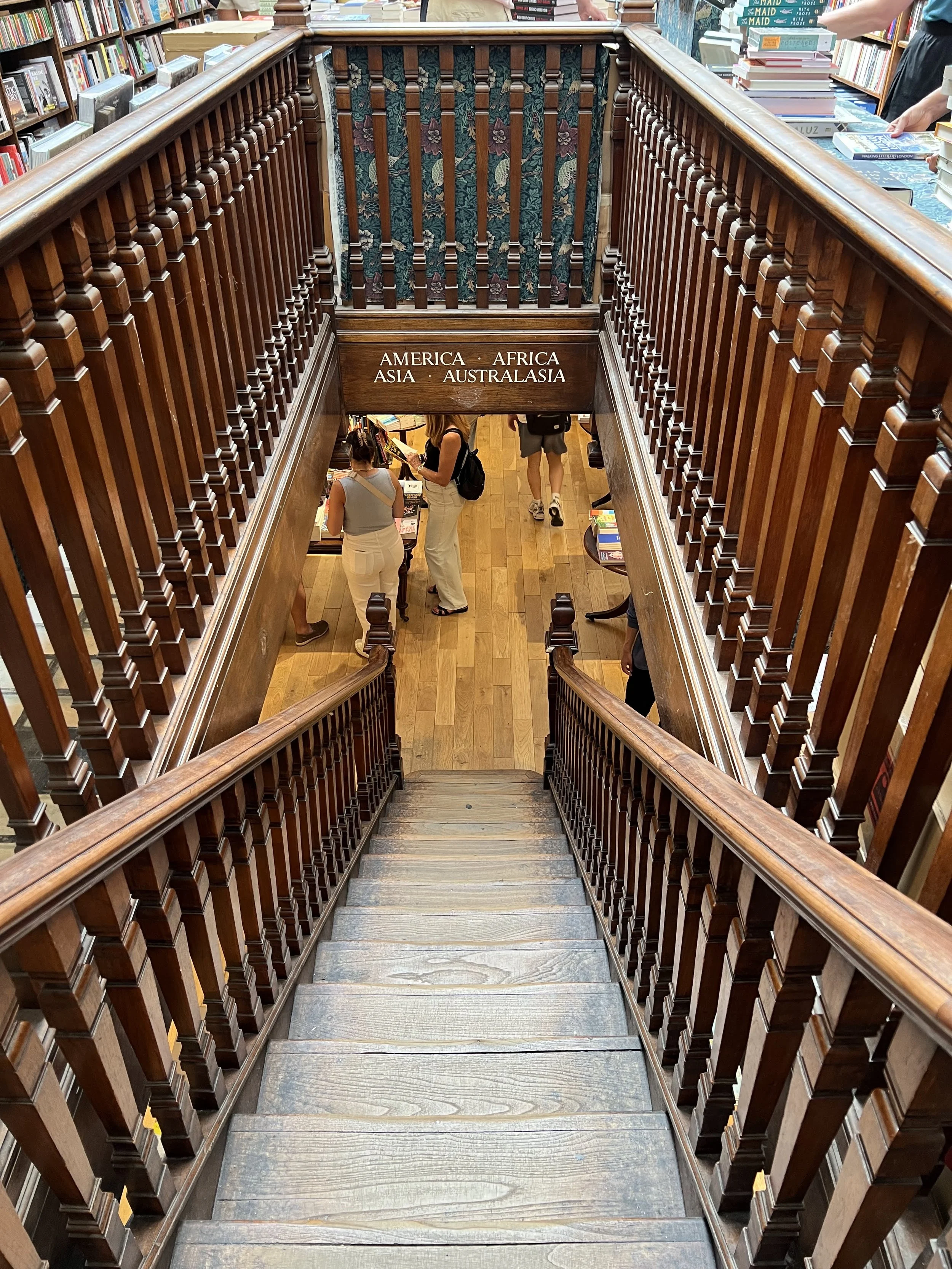 That afternoon, we had some free time to explore and, while most of the women headed to Harrods for some retail therapy, a couple of us went to Daunt Books. This is a place I had never visited but had heard much about, and I’m so glad I got to see it. Not only is it a gorgeous store, it has an unusual way of shelving books—by country. I’ve never seen it done like that before; travel books mixed with fiction, memoir, and anything else you can think of based on the country the book is from or about.